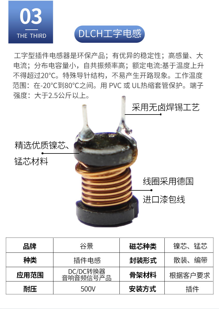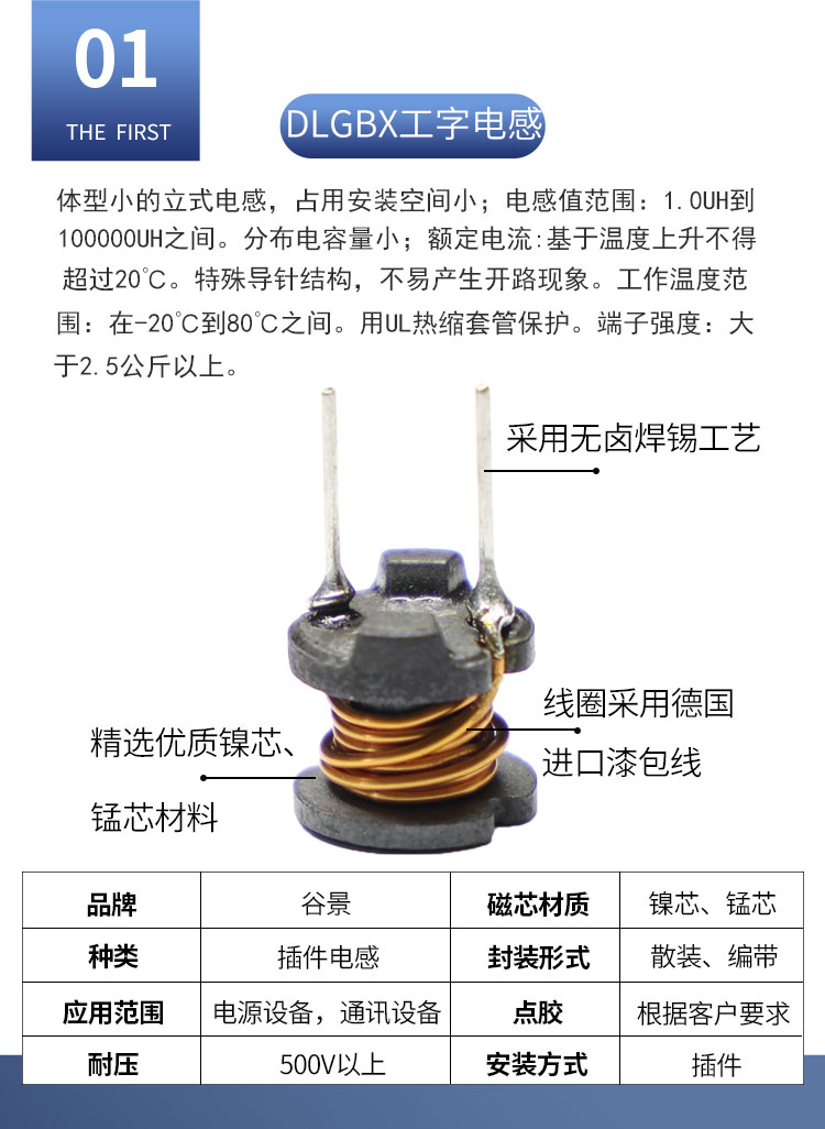 DLGBX工字電感:尺寸:4.5*7.0-18.0*20.0;感量:1uH-100mH;精度:J級(jí)(±10%)、K級(jí)(±10%)、M級(jí)(±20%);電流量:25mA-16.5A;特點(diǎn):小體積,高儲(chǔ)能;適用于:電視、電源供應(yīng)器、LED照明等。詳情咨詢:0512-65368862。工字電感,工字電感廠家,工字電感0406,工字電感0608,工字電感0810,工字電感0912,工字電感1010,工字電感1012,屏蔽工字電感,47uh工字電感,33uH工字電感,220uH工字電感,工字電感生產(chǎn)廠家,電感定制,屏蔽工字電感,杭州工字電感,南京工字電感