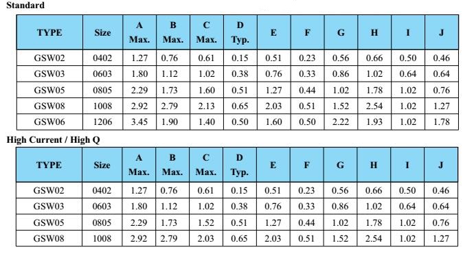 一、高頻繞線電感GSW產(chǎn)品特性: